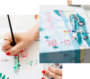 Um aus jeder Box ein ganzes Universum zu machen, reicht es aber nicht unbedingt, einfach nur durch die Stadt zu laufen. Das gesamte Team sammelt mit, damit so viele inspirierende Bilder und Fotos wie möglich zusammenkommen. Kanako spielt mit Farben, Texturen und Stimmungen, die sie mit ihren Skizzen vom Alltagsleben vermischt.