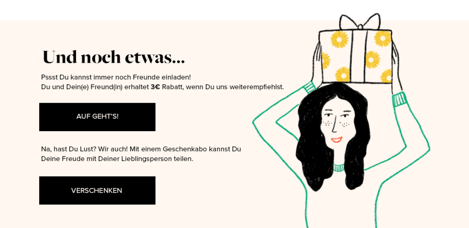 Du und Dein(e) Freund(in) erhaltet 3€ Rabatt, wenn Du uns weiterempfiehlst.